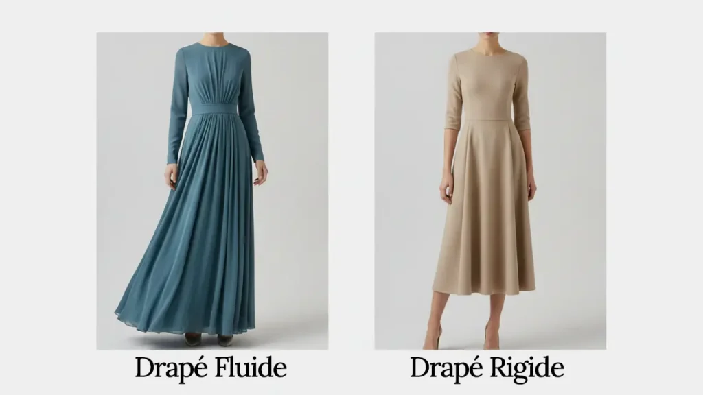 | Robe fluide | Viscose, crêpe, voile de coton | Drapé, légèreté, mobilité |